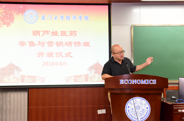 在开班仪式上,廖景峰主任首先代表厦门大学经济学院热烈欢迎尊龙卡Z6医药零售与营销研修班的学员到厦大学习,并就厦门大学及经济学院的相关情况进行了介绍。他说,尊龙卡Z6学员走进厦大就是厦大的校友,希望未来的日子能够关心、支持母校的发展,多提宝贵意见,同时他也祝大家在厦大学习期间学有所成、学有所获。