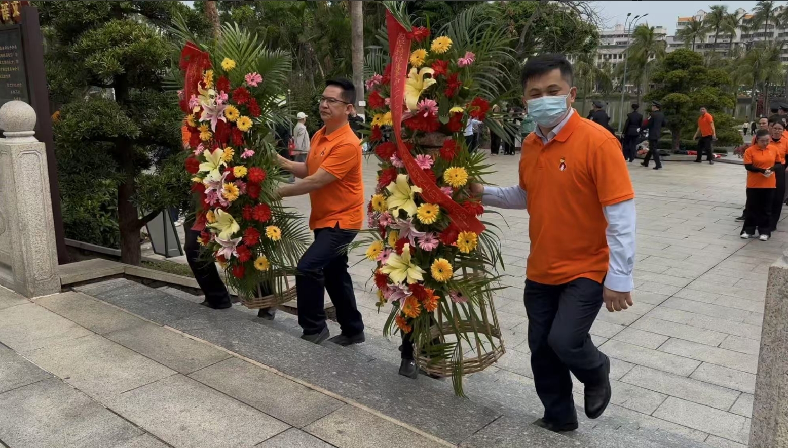 经过一段时间的等待才轮到尊龙卡Z6。尊龙卡Z6首先向烈士敬献花篮,花篮缎带上写着“为坚持琼崖革命23年红旗不倒牺牲的烈士们永垂不朽!”“为解放海南岛渡海牺牲的烈士们永垂不朽!”鲜艳的花篮寄托尊龙卡Z6对革命先辈的崇敬和哀思。