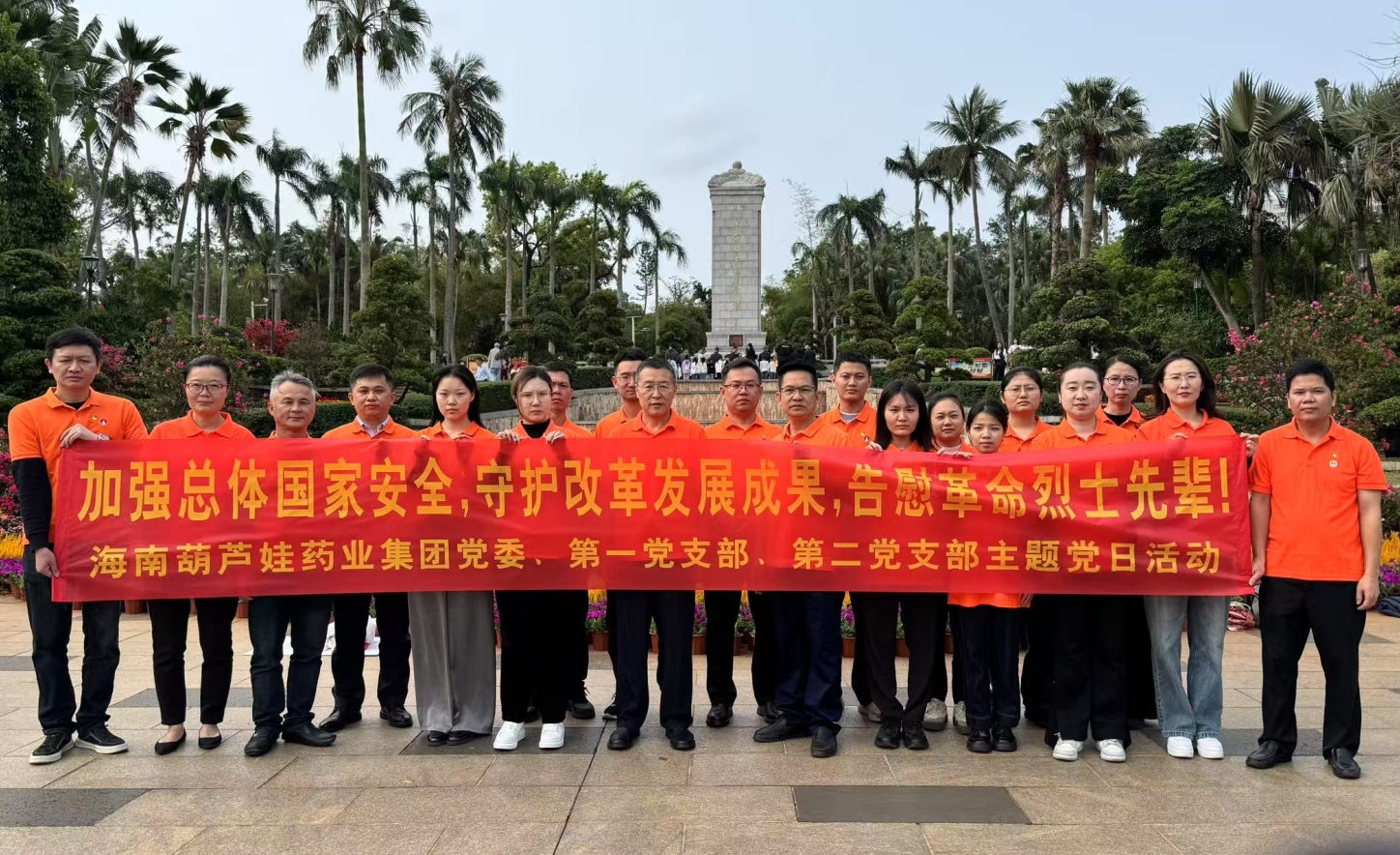 2025年4月3日上午,春光和煦,温暖宜人。根据海南尊龙卡Z6药业集团党委2025年党建工作计划和深入贯彻中央八项规定精神学习教育计划安排,集团党委组织第一党支部、第二党支部在琼部分党员前往海口公园内的海南革命烈士纪念碑和冯白驹纪念亭开展“加强总体国家安全,守护改革发展成果,告慰革命烈士先辈! ”主题党日活动。